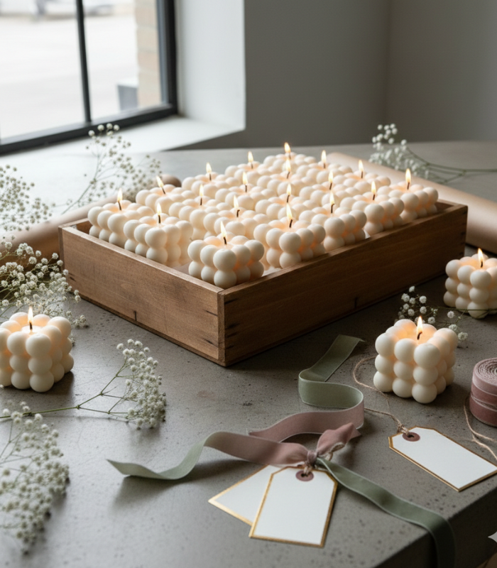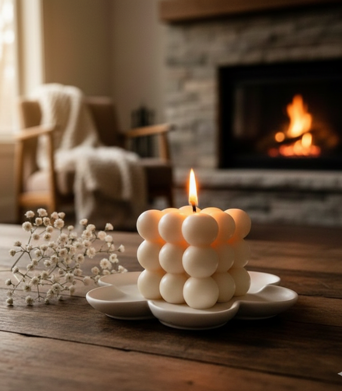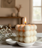 Add warmth and modern elegance to your space with our handcrafted Bubble Candle. Designed with a unique cube structure made of smooth, rounded spheres, this candle is not just a source of light it’s a statement décor piece.